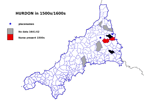 The name Hurdon for example has a long history. William Hurdon was living at Lezant, next to the Tamar, in 1544 and he had a namesake in the neighbouring parish of North Hill. North Hill became the core district for Hurdons until the 1700s, when this family name began to spread. Its early geography proves the origin was the placename Hurdon, found at Altarnun and at Launceston. This looks English but is actually thought to be from the Cornish language, meaning fort of the ram.