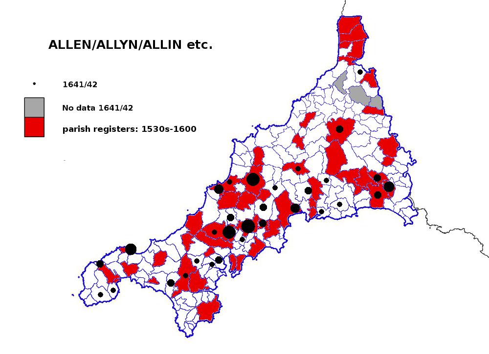 Two fairly common Cornish surnames, both with a wide distribution in the 1500s. You can find maps of these in 1861 for comparison here.
