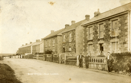 Four Lanes is a village on the higher land south of Redruth, straddling the road to Helston. As people rush through it on their way to school, work or shops they probably give little thought to the place, a rather nondescript and uninspiring ribbon development. Their main preoccupation will be to find their elusive brake pedals to avoid the cars parked along the main road.