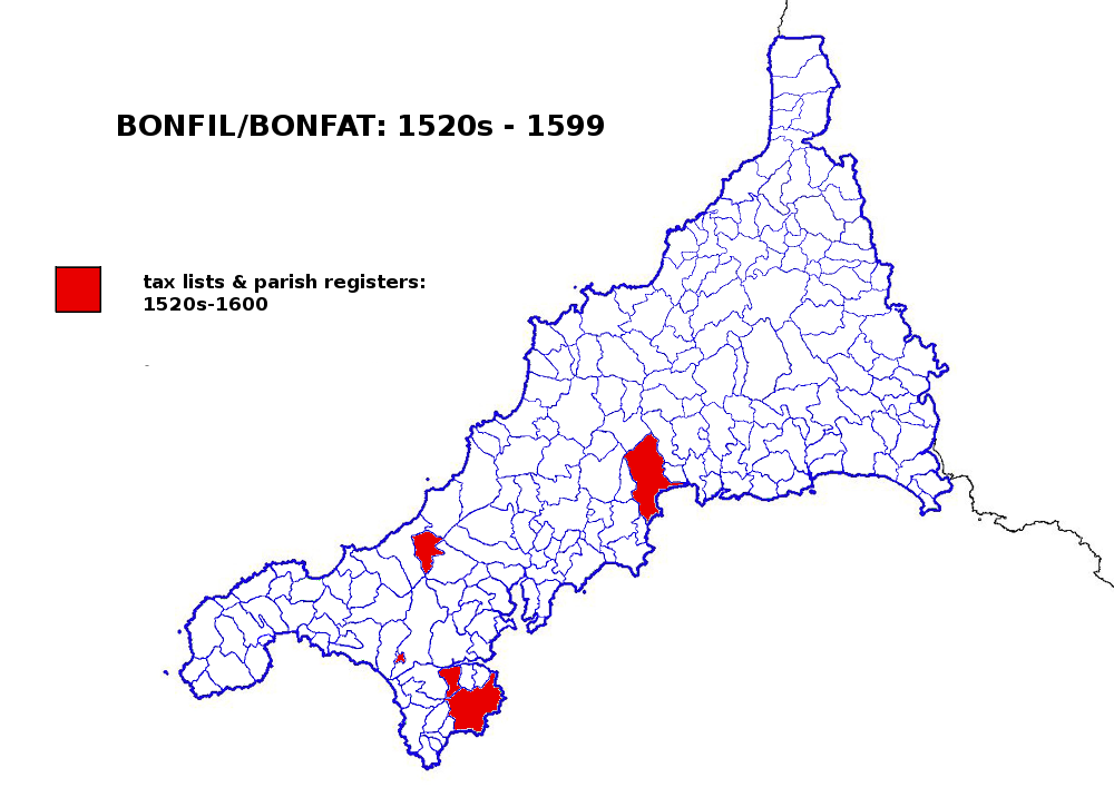 1. I would have thought that Bonfil = good son, and Bonfat = good fate (thus not the same name). Boniface, the more common spelling of the second name, was common at one time. And who wouldn’t wish for a bonfil or indeed bonnefille?
