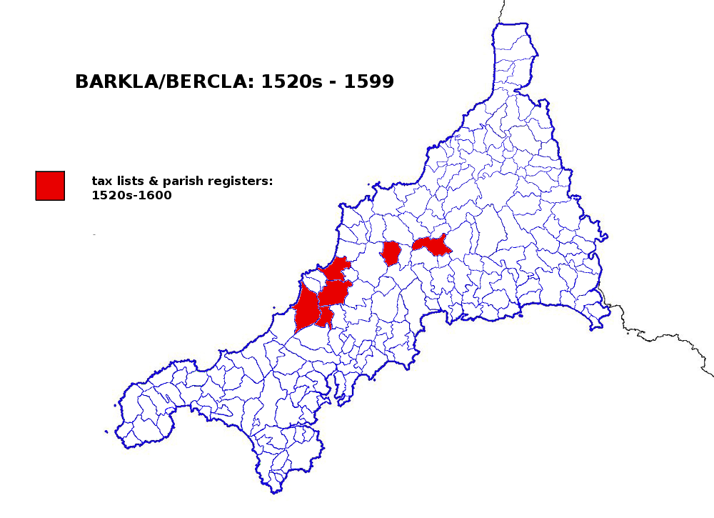 There is also the surname BARKLE which seems to mutate almost completely to BARTLE by the end of the 18thC in places like Gwinear and Camborne. I often wondered whether this was simply a result of the way the name sounded when being recorded in the parish registers by the clerk or vicar. In other words BARKLE was meant to be BARTLE. But then BARKLE is very close to BARKLA! However, I have numerous connections with these names but no evidence of any movement from BARKLA to BARKLE.
