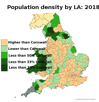 Fact: Cornwall is NOT the least densely populated region or ‘county’ in Britain. Almost half the land area of England and Wales is less densely populated than Cornwall.