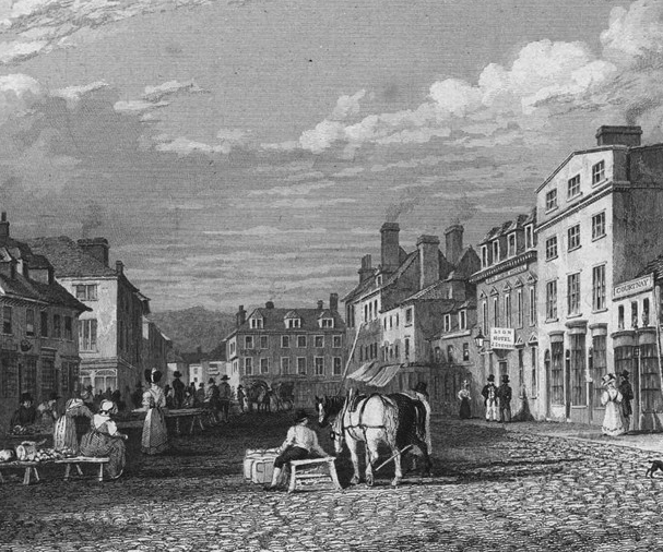 Truro’s Boscawen Street in 1831 after Middle Row was demolished in the 1790s when the street took on its present broad aspect.