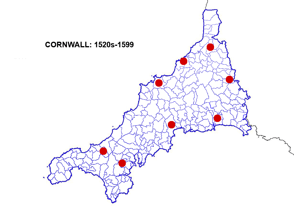 It might seem illogical to give someone the surname Cornow (if it meant Cornwall) in Cornwall in order to distinguish them from others when almost everyone else also hailed from Cornwall. Nonetheless, if we look at the English surname Cornwall, we find it was evenly distributed in the 1500s across both west and east Cornwall. Perhaps Cornow was the Cornish language version of Cornwall after all, at least in mid and west Cornwall, with the Cornows/Cornews in the far east having a separate, at present unknown, origin.