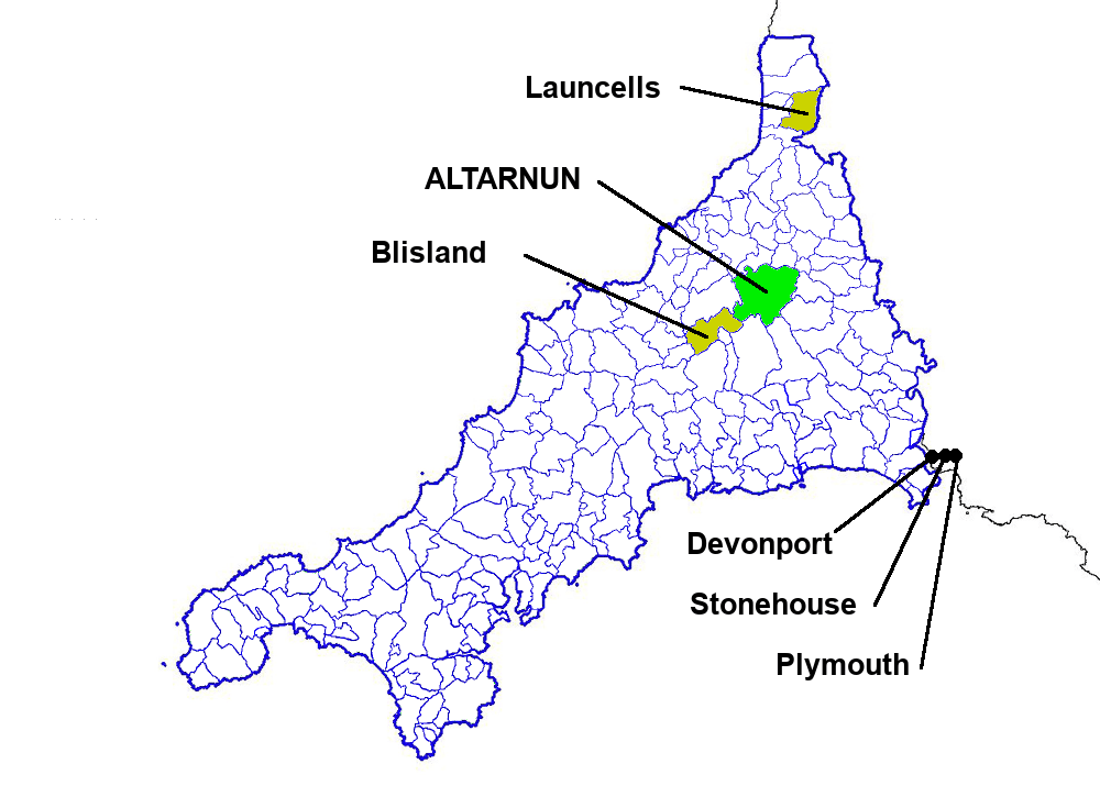 In the 1800s in the British Isles there was a general drift from the countryside to the towns. We can see this process at work even in remote parishes such as Altarnun in east Cornwall. Altarnun has the distinction of being Cornwall’s largest parish. It includes farms, hamlets and villages scattered below the northern and eastern flanks of Bodmin Moor and sprawls up to take in large chunks of the high moors. The parish was also remarkable in that 13 of 15 11-year olds living there in 1851 were still alive in 1891, and all still in the British Isles. As we’ll discover in other parishes, this was an exceptionally high proportion traced.