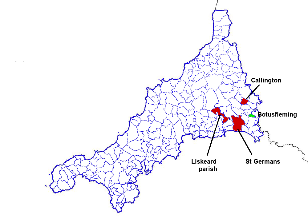 It’s time to pay a brief visit to Botusfleming, one of Cornwall’s lesser-known parishes. The name does not imply a medieval Flemish connection: before the 1300s the parish was called Botflumyet or Botflumet, a Cornish placename. Although the meaning of Flumet is unclear, it’s most likely to be a personal name, so the parish was in the 800s or 900s Flumet’s dwelling or holding.