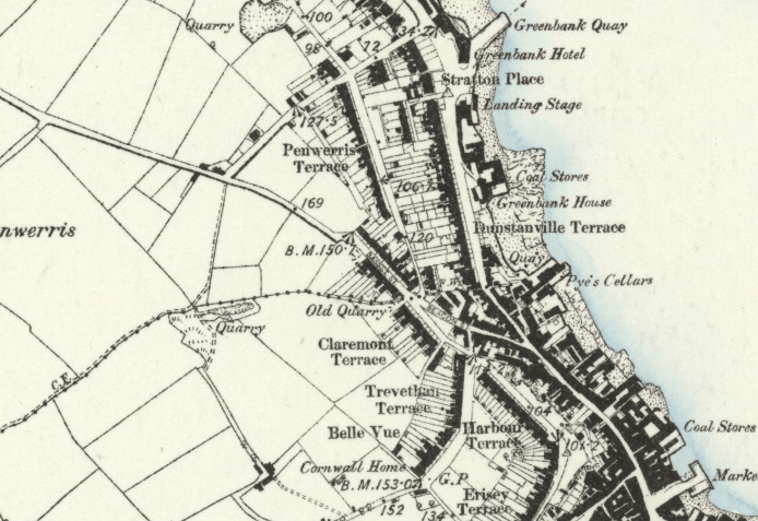 These days, to the consternation of some of its residents, Budock is being inexorably joined to Falmouth by the remorseless sprawl of new housing. However, the urbanisation of Budock is not new. In the mid-nineteenth century the former boundaries of the parish extended as far as the estuary of the Fal to the north of the growing town of Falmouth. Several of Falmouth’s terraces – Dunstanville Terrace, Penwerris Terrace, Stratton Terrace – had already spilled over the parish boundary into what was technically Budock.