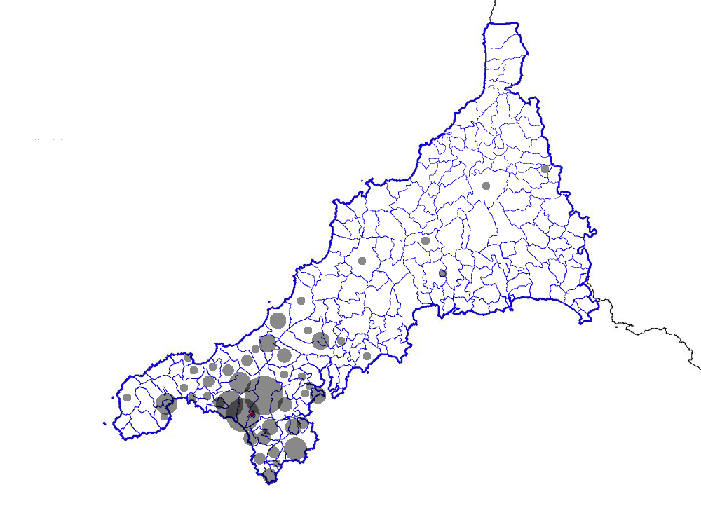 On the other hand the extent of Helston’s overall catchment area was similar for men although a few towns at a distance, such as Redruth or Penzance, sent more men than women to Helston.