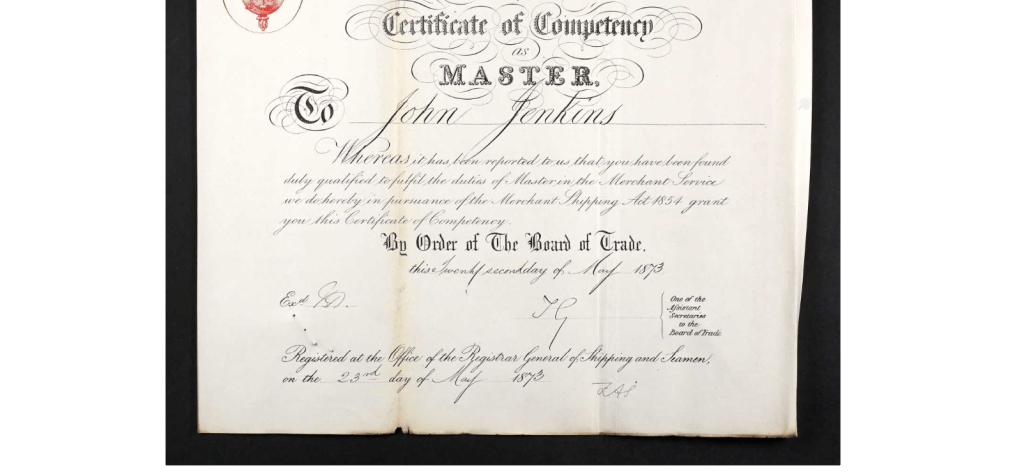 John Jenkins farmed a smallholding of five acres on the off island of Tresco in the mid-1800s. His son, also named John, became a merchant seaman. His whereabouts in 1871 are unknown but he received his second mate’s certificate in 1869, followed by his master mariner’s ticket in 1873 so he was no doubt at sea somewhere. In 1878 he married Mary Ann Pender, also from Tresco. Did she persuade him, or was he fed up with life on board coasting vessels? Because he gave up the seafaring life, taking on the management of a ‘coffee shop’ at the Tresco Inn. By 1891 this had expanded to a pub where John and Mary also sold groceries. The small population of Tresco, hovering just over 300 in the later nineteenth century, could not have made this too lucrative.