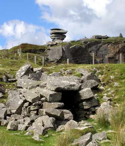 A Linkinhorne resident who had no illegitimate children was Daniel Gumb. Daniel was a stonecutter and a self-taught mathematician. He gained fame by carving out a home in the 1730s for himself and his wife and their nine children under a large granite slab near the Cheesewring rock in the parish. Some of this can still be seen, with Pythagoras’ theorem neatly cut into a rock. What we see now however is not the original home, which was reportedly 30 feet long and divided into rooms. In the nineteenth century, as the quarry got closer to it, some of the remains were moved to its present location by the quarrymen. The tale is that Daniel would sit on the massive top block on a clear night watching the stars rotate and contemplating the mysteries of existence. No light pollution in those days, especially at one of Cornwall’s highest points.