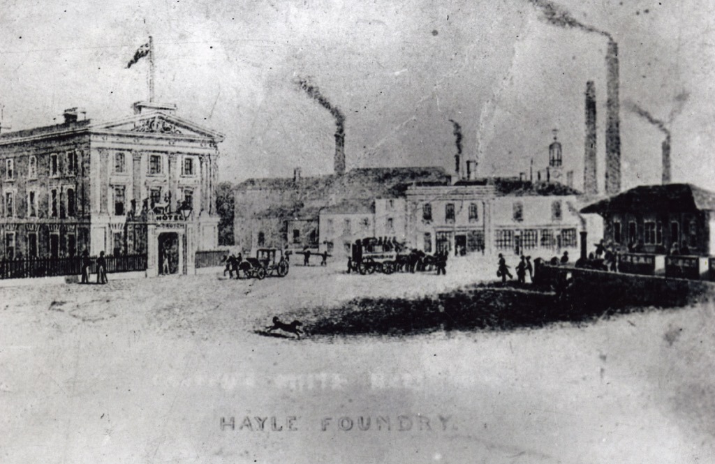 In 1779, John Harvey, a blacksmith in the parish of Gwinear, moved to Hayle and established a small foundry there. His son Henry worked to transform this into Cornwall’s major engineering works, by the nineteenth century employing hundreds of men. To the east of Harvey’s foundry was Copperhouse Foundry, originally a copper smelting works begun in 1758 and Harvey’s fierce commercial rival. The two companies waged what at times became open war over access to the harbour at Hayle and the difficult passage out into the open sea. Nonetheless, their activities provided the foundation for the growing town of Hayle to emerge, eventually uniting the two original settlements at Copperhouse and Foundry.
