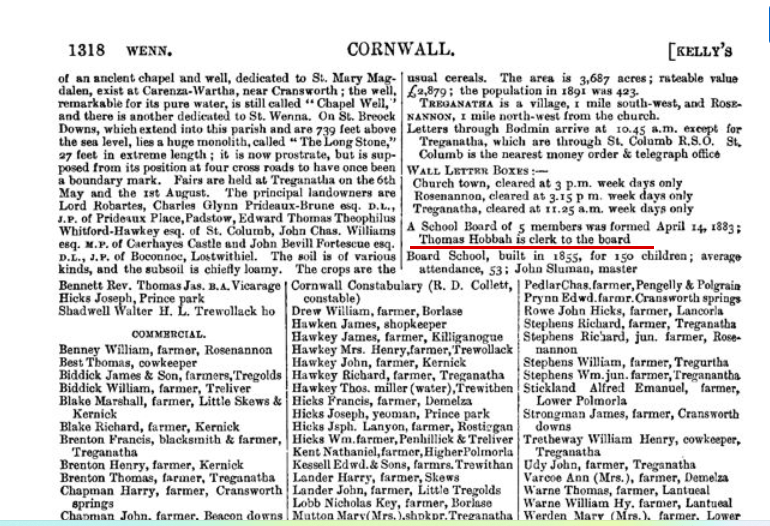 Between 1882 and 1887 John and Jessie left the Institution and were back at St Wenn. John was recorded in 1881 as keeping a temperance hotel. Temperance hotels had spread after the 1830s with the growth of the temperance movement in the UK, providing an alternative to licensed premises for a rising number of non-drinkers. It’s not clear where John’s temperance hotel would have been. St Wenn wouldn’t appear to be the ideal location.