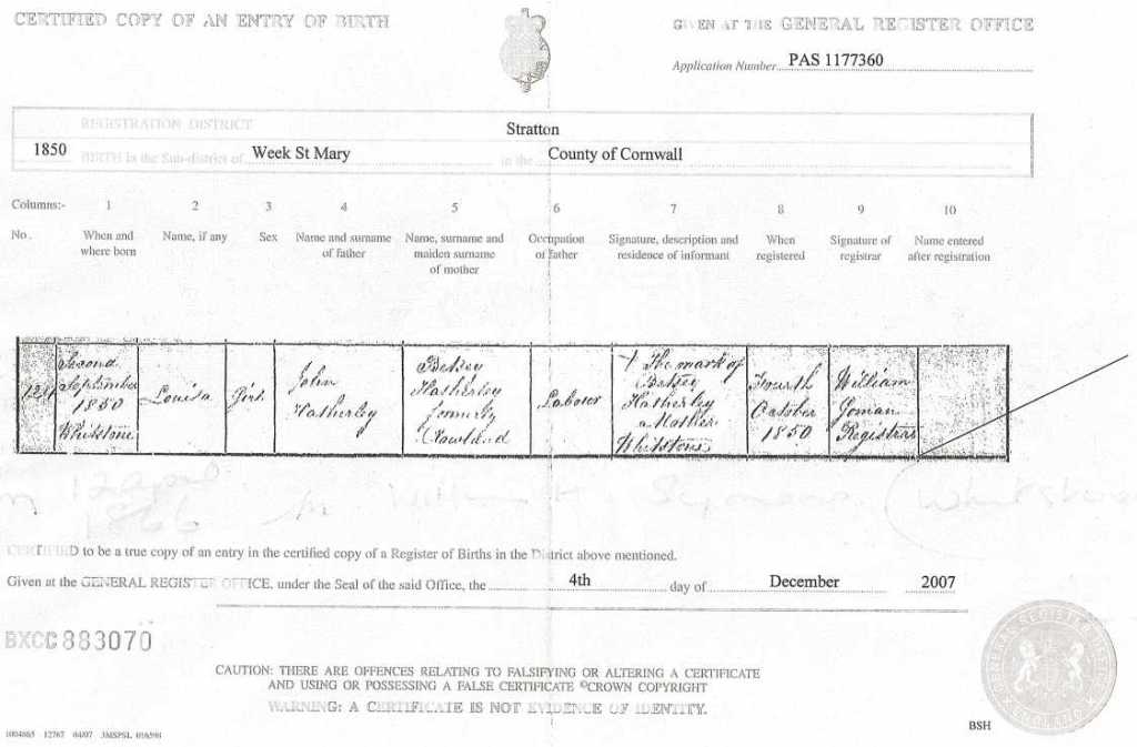 Richard Henry Heard was born at Fuges just across the parish boundary in Week St Mary at the opposite end of the parish from Louisa. Although Richard’s father was a farm labourer he was apprenticed to a master carpenter at Bridgerule on the border with Devon, in a household where his sister also worked as a servant. After completing his apprenticeship and getting married Richard and his wife Elizabeth moved first to his wife’s home parish of North Petherwin and then further south to Linkinhorne before finally settling in the 1880s at Crow’s Nest in St Cleer. The closure of the local copper mines in that decade could hardly have been good news for his carpentry concern.