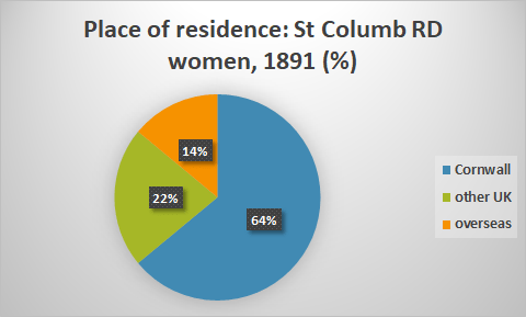 This might imply that more boys migrated than the raw data suggest. With a higher proportion in the RD engaged in mining when compared with neighbouring Bodmin RD, the greater number leaving for other places in the UK or overseas might come as no surprise.