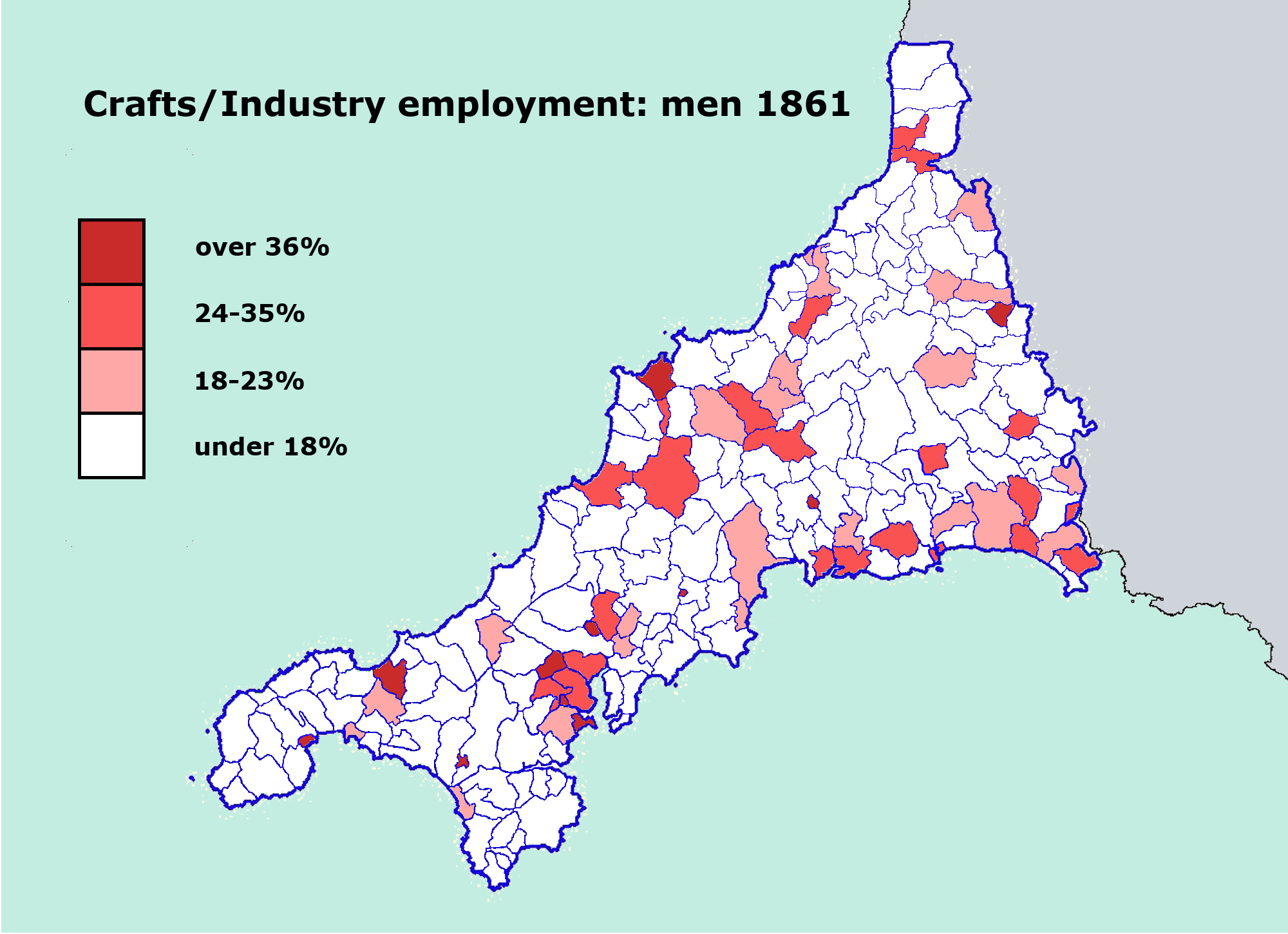 Meanwhile, those parishes dominated by either farming or mining tended to have lower proportions engaged in crafts and industry.